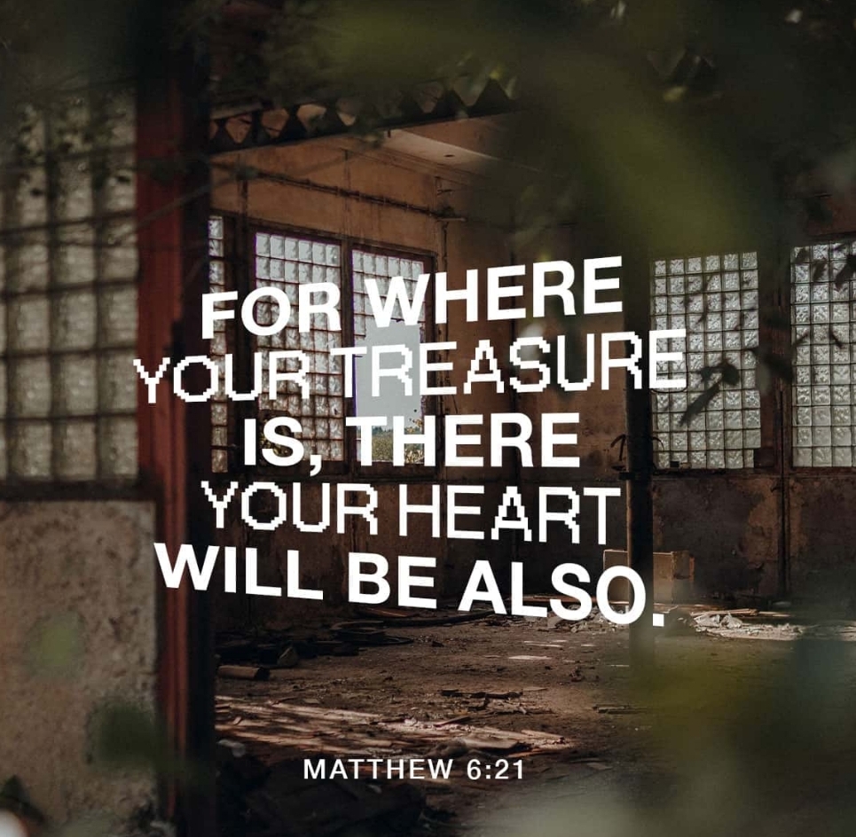 For where your treasure is, there your heart will be also. Matthew 6:21 ESV