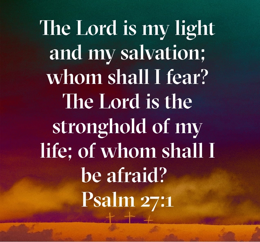 The Lord is my light and my salvation; whom shall I fear? The Lord is the stronghold of my life; of whom shall I be afraid? Psalm 27:1 ESV bible.com/bible/59/psa.27.1.ESV